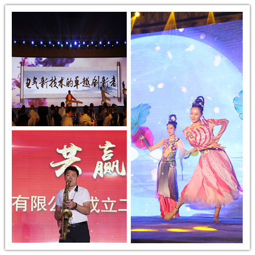 慶典舞臺上,借助現(xiàn)代聲光電技術(shù),融匯古箏、武術(shù)等傳統(tǒng)文化和舞蹈、說唱、薩克斯等現(xiàn)代元素,實(shí)現(xiàn)人屏互動(dòng),為各位來賓奉獻(xiàn)了一場精心準(zhǔn)備的視覺盛宴。