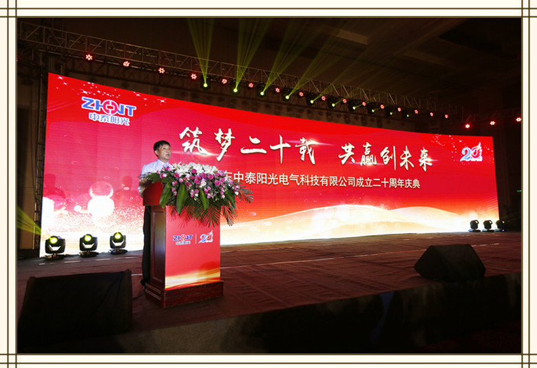 2017年8月9日,山東中泰陽光電氣科技有限公司(以下簡稱中泰陽光)迎來了20周年華誕。上午10點(diǎn),盛大的慶典在日照市嵐橋錦江大酒店隆重舉行。日照市各界領(lǐng)導(dǎo)、全國供應(yīng)商代表、中泰陽光全體同仁以及其他各界人士,共同參加了此次盛典,共同分享了中泰陽光20周年喜悅與精彩。