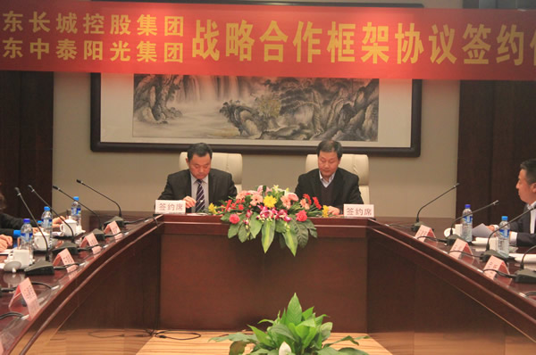 2014年2月24日,山東中泰陽光集團(tuán)與山東長(zhǎng)城控股集團(tuán)戰(zhàn)略合作框架協(xié)議簽約儀式,在日照嵐橋錦江大酒店隆重舉行。此次簽約,標(biāo)志著雙方建立了穩(wěn)固的戰(zhàn)略合作伙伴關(guān)系,為集團(tuán)新業(yè)務(wù)的拓展奠定了良好的基礎(chǔ)。